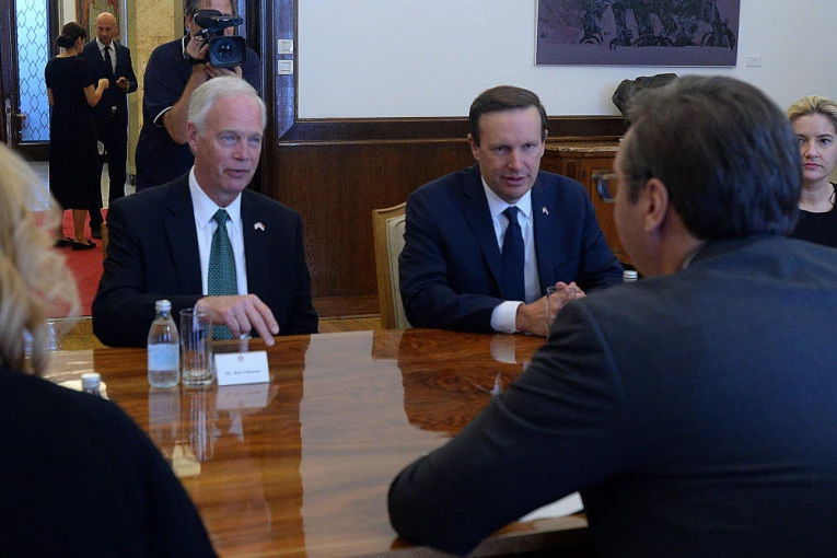 Predsedenik Srbije Aleksandar Vučić danas je imao susret sa američkim senatorima Ronom Džonsonom i Krisom Marfijem. Tema razgovora bila je deblokada dijaloga između Beograda i Prištine.