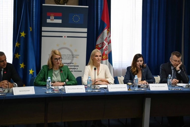 Foto: MUP Srbije- Svaki pojedinačni slučaj korupcije koji izvrši neki policijski službenik narušava poverenje građana u policiju i zato smo odlučni u nameri da iskorenimo korupciju. Sektor unutrašnje kontrole od početka ove godine podneo je krivične prijave protiv 106 policijskih službenika i drugih zaposlenih u MUP-u koji se sumnjiče da su počinili 186 krivičnih dela sa elementima korupcije, među kojima je 111 krivičnih dela zloupotreba službenog položaja, 66 primanje mita i devet dela trgovina uticajem - rekla je Popović Ivković otvarajući konferenciju povodom početka realizacije tvining projekta "Jačanje kapaciteta unutrašnje kontrole za borbu protiv korupcije u Ministarstvu unutrašnjih poslova".
