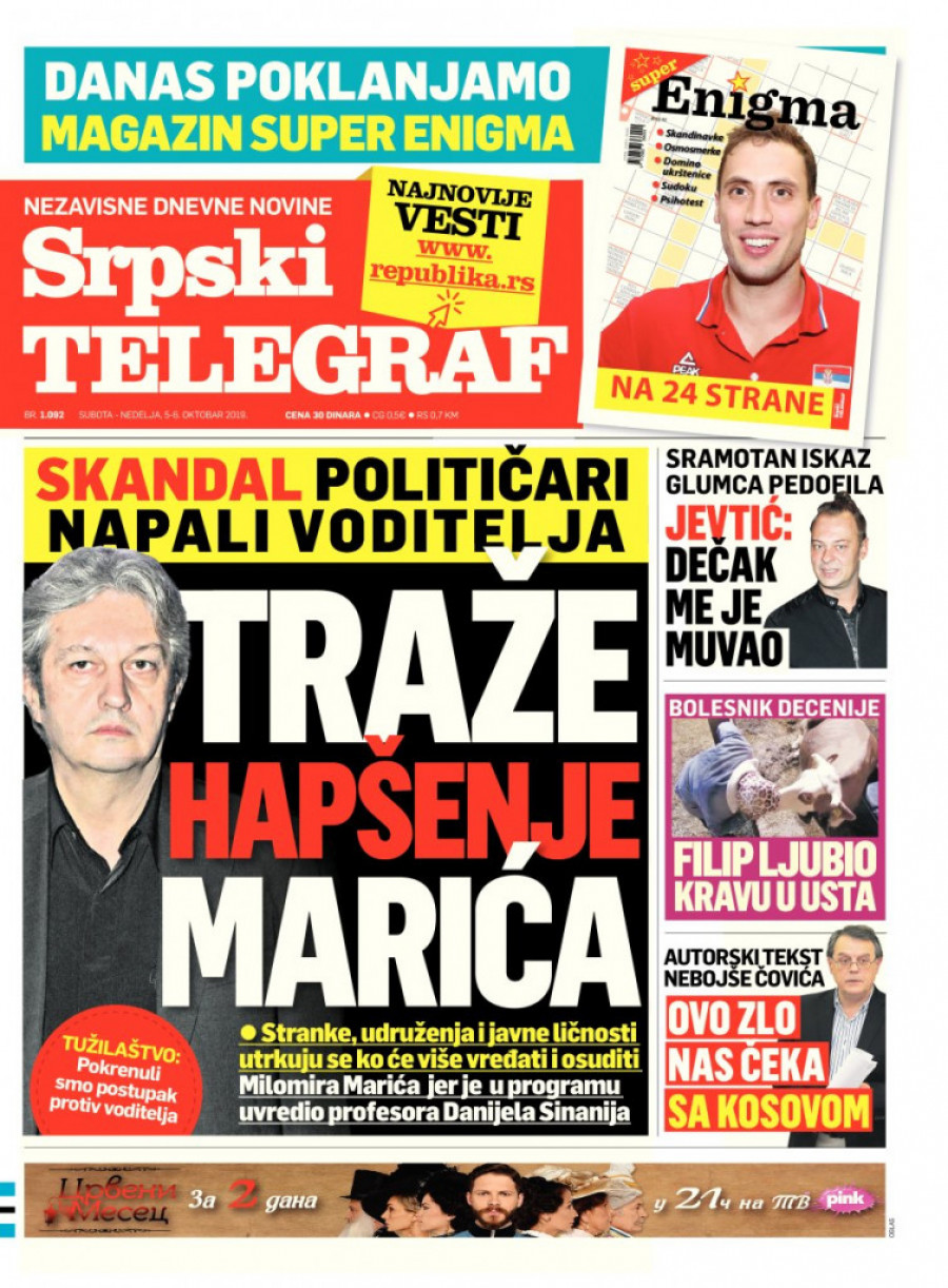 Milomir Marić moraće da odgovara na pitanje Višeg javnog tužilaštva zbog uvrede koje je izrekao o profesoru Filozofskog fakulteta Danijelu Sinaniju. Komentar o poreklu profesora Sinanija bio je povod da se istraga o Mariću pokrene i na vanrednoj sednici Saveta Regulatornog tela za elektronske medije (REM), dok iz Stranke sloboda i pravda Dragan Đilasa i Pokreta slobodnih građana Sergeja Trifunovića traže žestoku kaznu za glavnog urednika televizije Hepi. Istovremeno, osude su stigle i od javnih ličnosti, dok se na društvenim mrežama gotovo utrkuju ko će osuditi i tražiti goru kaznu za Marića.