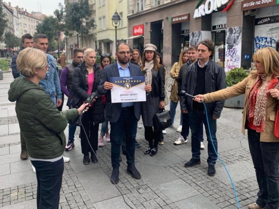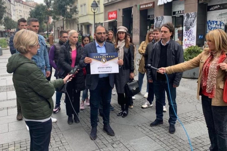 Foto: Privatna arhivaNa performansu koji su u centru grada priredili predstavnici SNS Handanović je najavio da će Đilasu uručitu "zahvalnicu za najgoreg gradonačelnika Beograada".