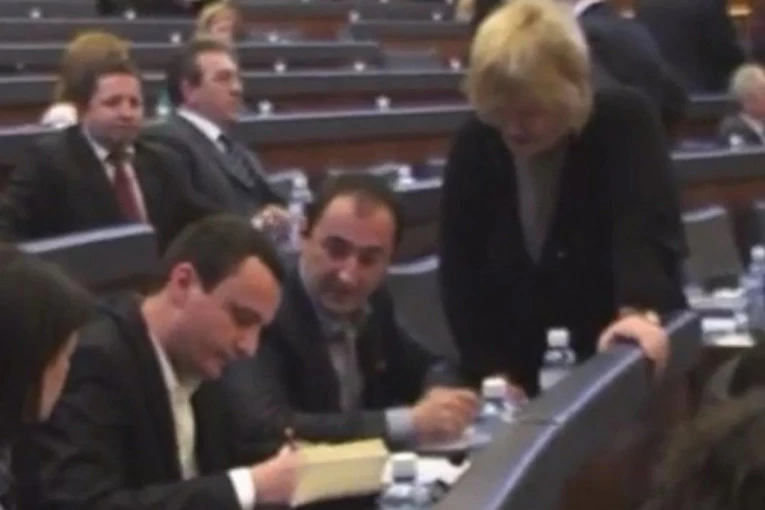 Na snimku se jasno može videti i čuti kako Rada Trajković prilazi mestu gde sedi Aljbin Kurti i moli ga da se pomire, dok je on potpuno ingoriše.