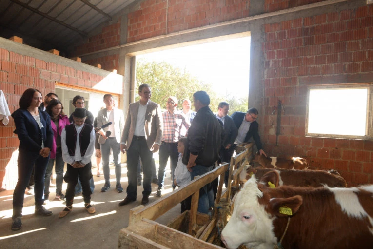 Obišao je i novu staju za čuvanje krava i mlekaru, a probao je i jabuke iz velikog voćnjaka porodice Milenković.