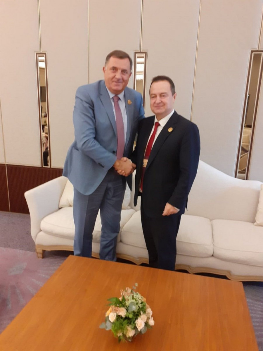 Na marginama 18. samita šefova država i vlada Pokreta nesvrstanih zemalja koji se održava u Bakuu, 25. i 26. oktobra, prvi potpredsednik Vlade Srbije i ministar spoljnih poslova Ivica Dačić susreo se sa domaćinom Samita predsednikom Ilhamom Alijevim.