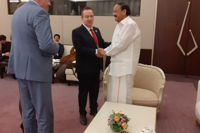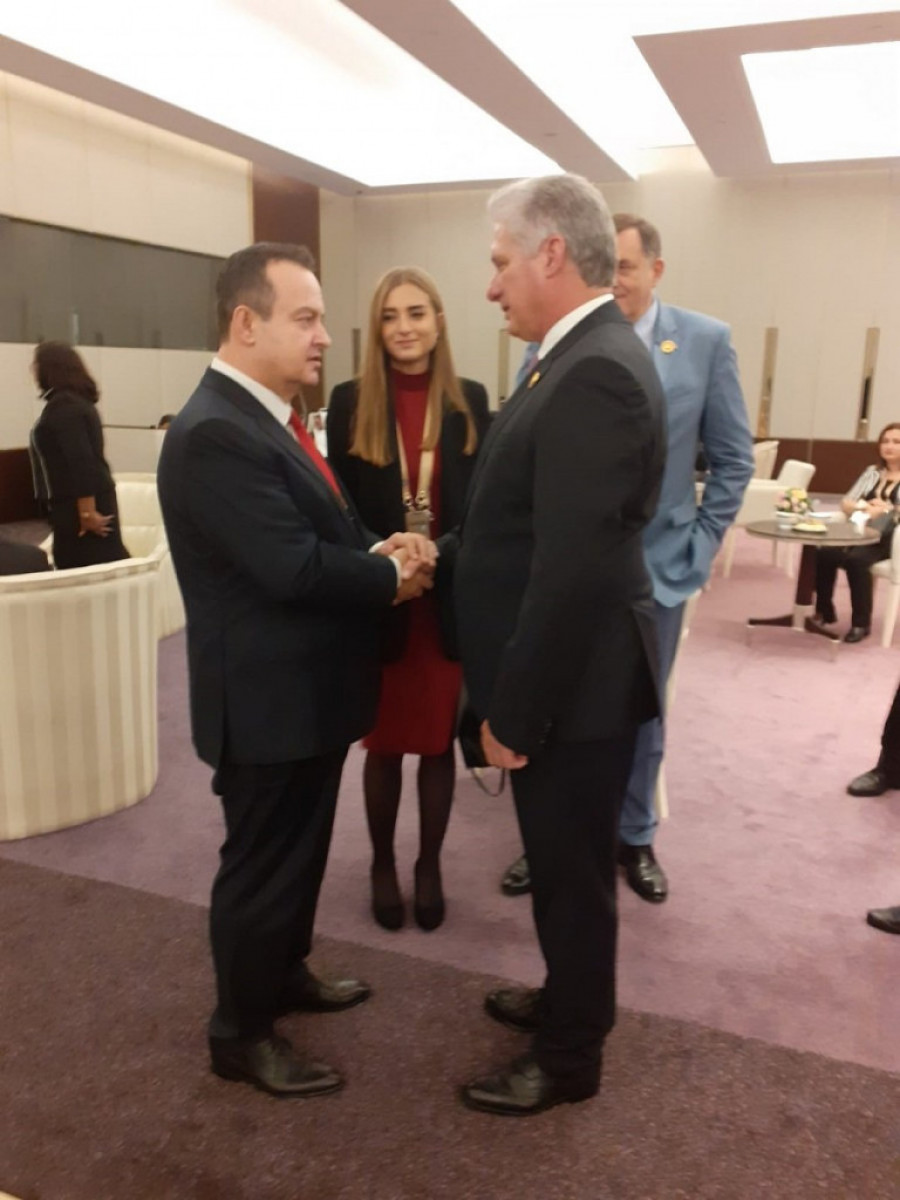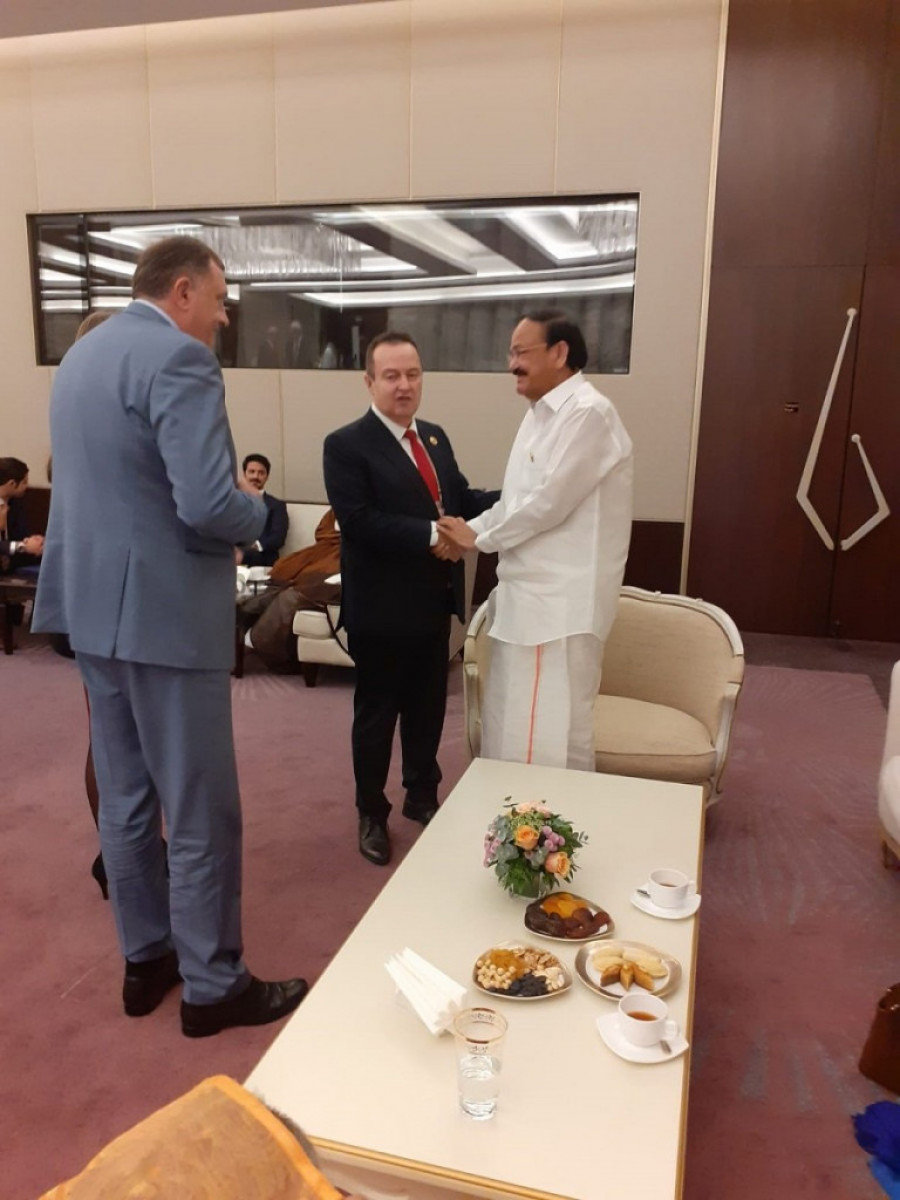 Foto: Ministarstvo spoljnih poslovaDačić se susreo i sa velikim brojem šefova delegacija, među kojima se izdvajaju: predsednik Venecuele Nikolas Maduro, predsednik Irana Hasan Rohani, predsednik Kube Migel Diaz Kanel, član Predsedništva BiH Milorad Dodik, potpredsednik Indije Venkai Naidu, premijerka Bangladeša Šejk Hasina, premijer Nepala Šarma Oli, predsednik predsedništva vrhovne skupštine Demokratske Narodne Republike Koreje Čoe Riong He, predsednik Parlamenta Belorusije Vladimir Andreičenko, ministar inostranih poslova Egipta Sameh Šukri, ministar inostranih poslova Palestine Rijad Al-Maliki, ministar inostranih poslova Turske Mevlut Čavušoglu .