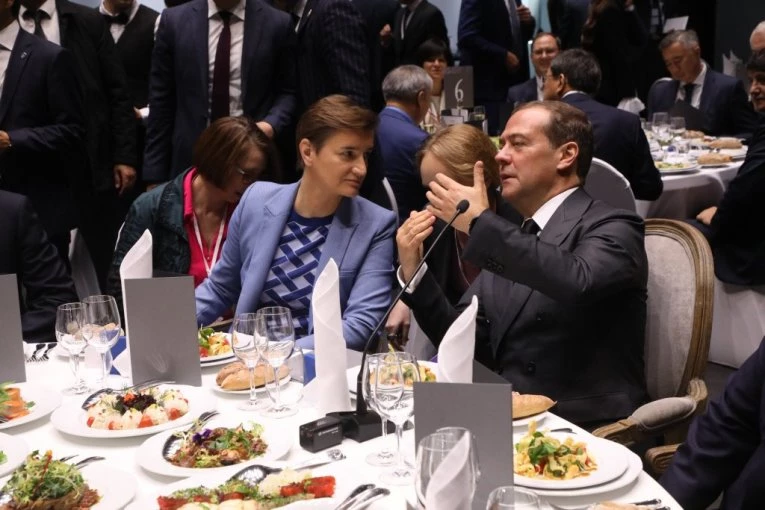 Foto: Tanjug/S. MILJEVIĆBrnabić za stolom sedi pored Medvedeva, a kasnije će sa njim imati i bilateralni sastanak.