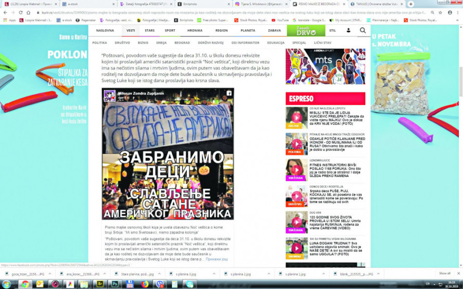 - Obeležavanje Noći veštica je nehrišćansko, a pogotovo nepravoslavno. Sama reč veštica je eufemizam za sotonu. Nije slučajno što veštice odvajkada u narodu širom sveta imaju izrazito negativnu konotaciju. Pa žene su spaljivali samo zato što su mislili da su veštice, odnosno Sotonine sluge - objašnjava Ranković.