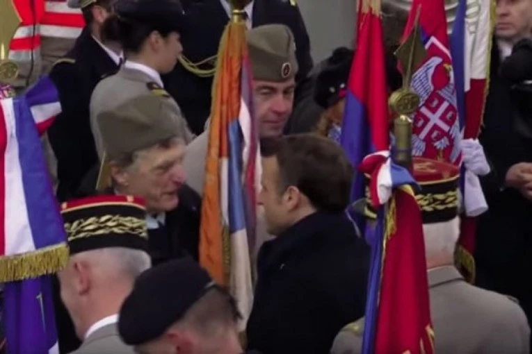 (VIDEO) Makron pozdravio Mišićevog praunuka usred Pariza: Ove scene sa obeležavanja Dana pobede su obišle svet