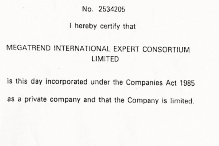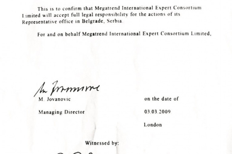 - Oni su otišli u London i tražili gde je adresa ove institucije Megatrenda IEC, slikali se, ali su prećutali da je ovoj instituciji promenjena adresa, kao i to da se ova institucija više ne bavi obrazovanjem, već samo konsultantskim uslugama od 2009, kada je prestala i sa svojim obrazovnim aktivnostima u Srbiji, o čemu postoji dokument overen u Londonu.
