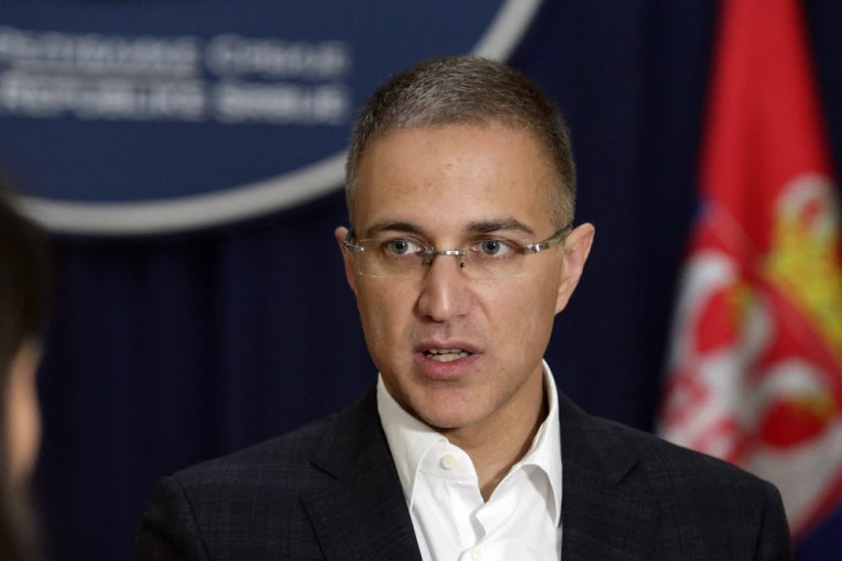 Foto: Tanjug/S. RADOVANOVIĆ- Prethodne noći je sprovedena dobra akcija MUP-a. Pripadnici granične policije su na prelazu Preševo uhapsil albanskog državljanina L.B. (29) i zapleniili 7,8 kg heroina. Ovo je dobra akcija policije pošto nisu bile tako česte ovako velike zaplene - rekao je Stefanović u Palati Srbija.