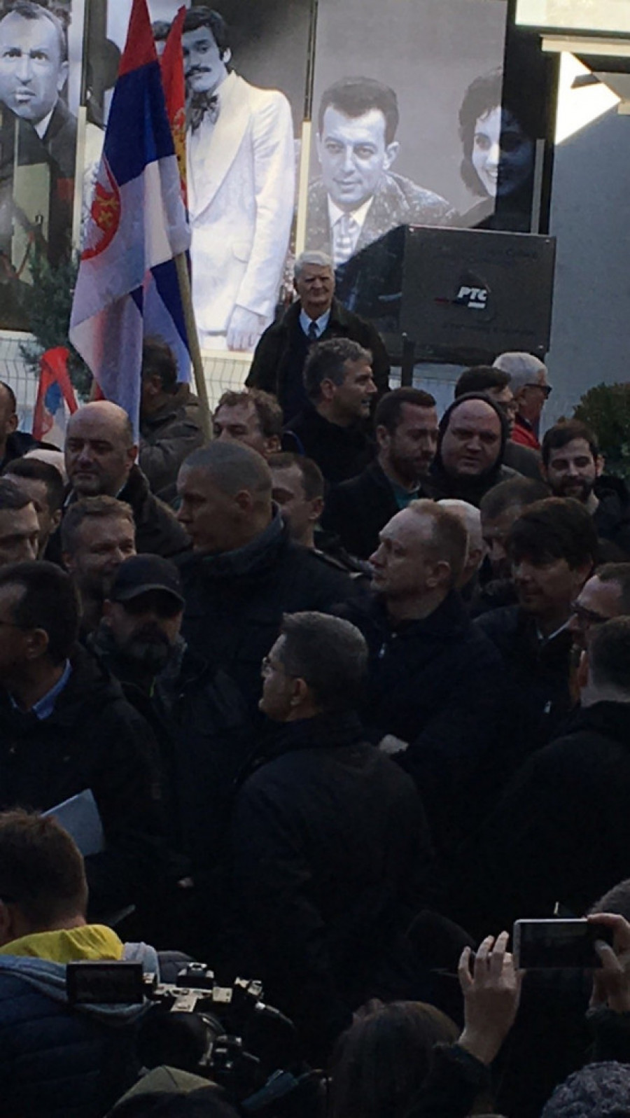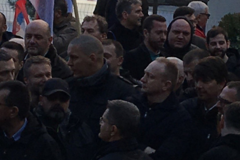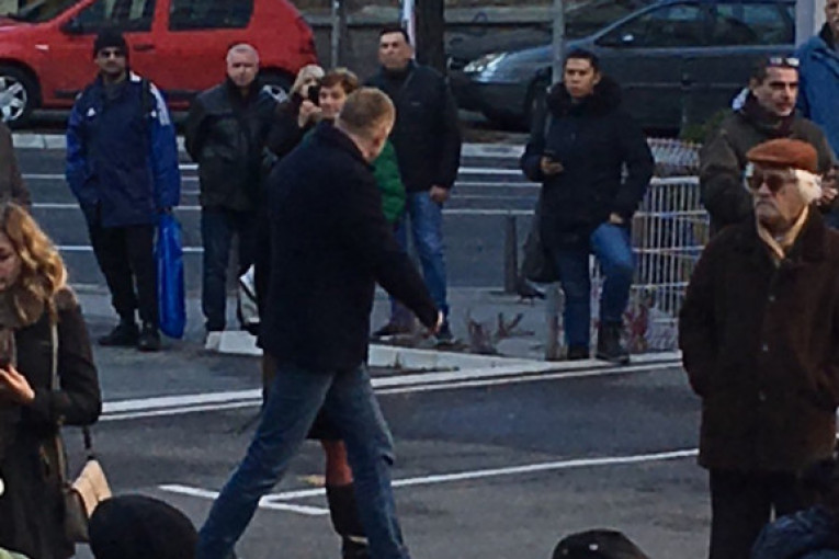 Dragan Đilas je sa okupljenima otišao na treći ulaz, Boško Obradović na drugi, dok je Vuk Jeremić ostao na glavnom.