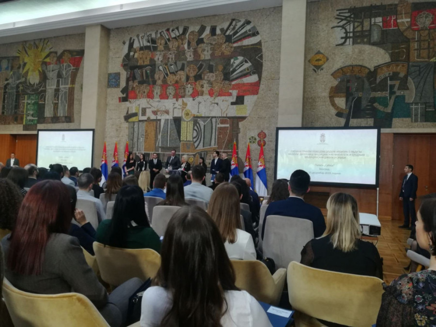 U Palati federacije u Beogradu završena je dodela ugovora o radu za najbolje diplomce Medicinskog fakulteta iz Beograda, Novog Sada, Niša i Kragujevca. Njih 103 dobili su posao u Kliničkim centrima u Srbiji, ali i specijalizacije za mlade lekare. Posao je dobilo i 100 najboljih učenika srednjih medicinskih škola.