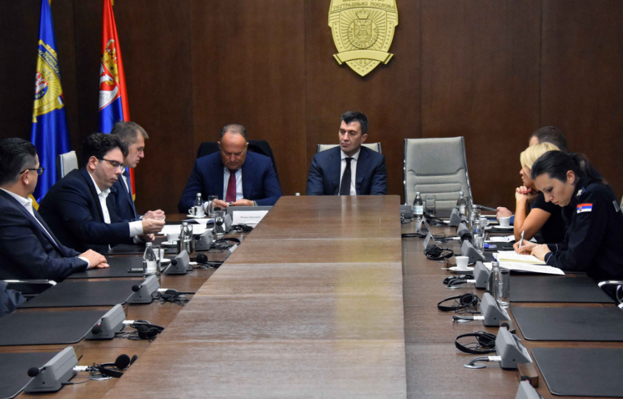 Foto: MUP SrbijeSastanku su prisustvovali ministar prosvete, nauke i tehnologije Mladen Šarčević, ministar za rad, zapošljavanje, boračka i socijalna pitanja Zoran Đorđević, direktorka Agencije za bezbednost saobraćaja Jasmina Milošević, pomoćnik ministra građevinarstva, saobraćaja i infrastrukture Zoran Ilić i državni sekretari Ministarstva pravde i Ministarstva zdravlja Radomir Ilić i Berislav Vekić.