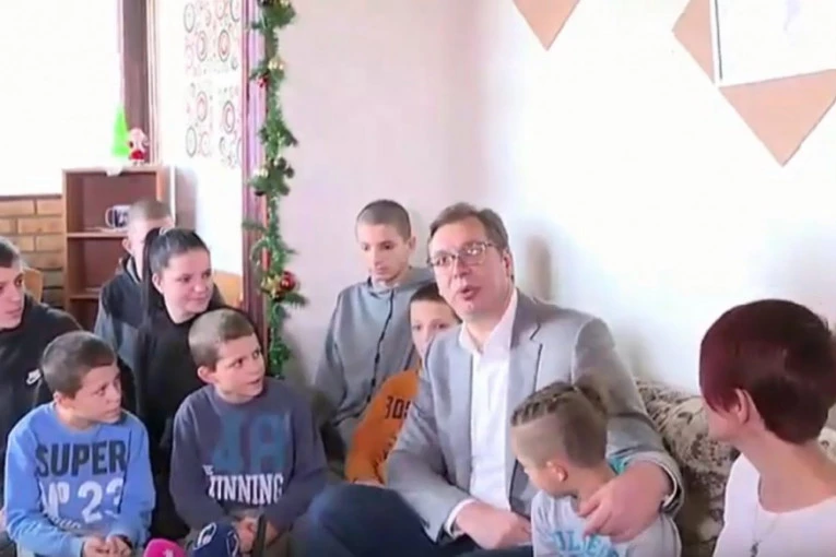 Vučić u Laćarku posetio samohranu majku sa devetoro dece: Srećan sam što mogu da provedem vreme sa vama