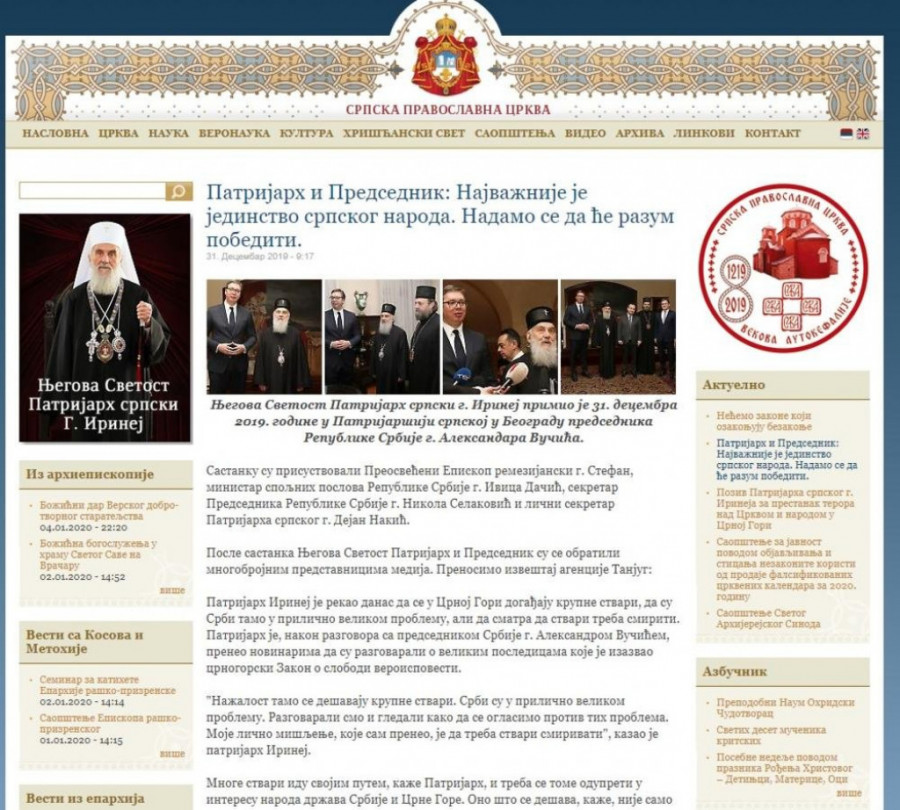 Srpska pravoslavna crkva prenela je prvi put u svojoj istoriji govor jednog predsednika Srbije kao što se dogodilo sa obraćanjem predsednika Aleksandra Vučića juče u Beogradu posle susreta sa patrijarhom Irinejem.