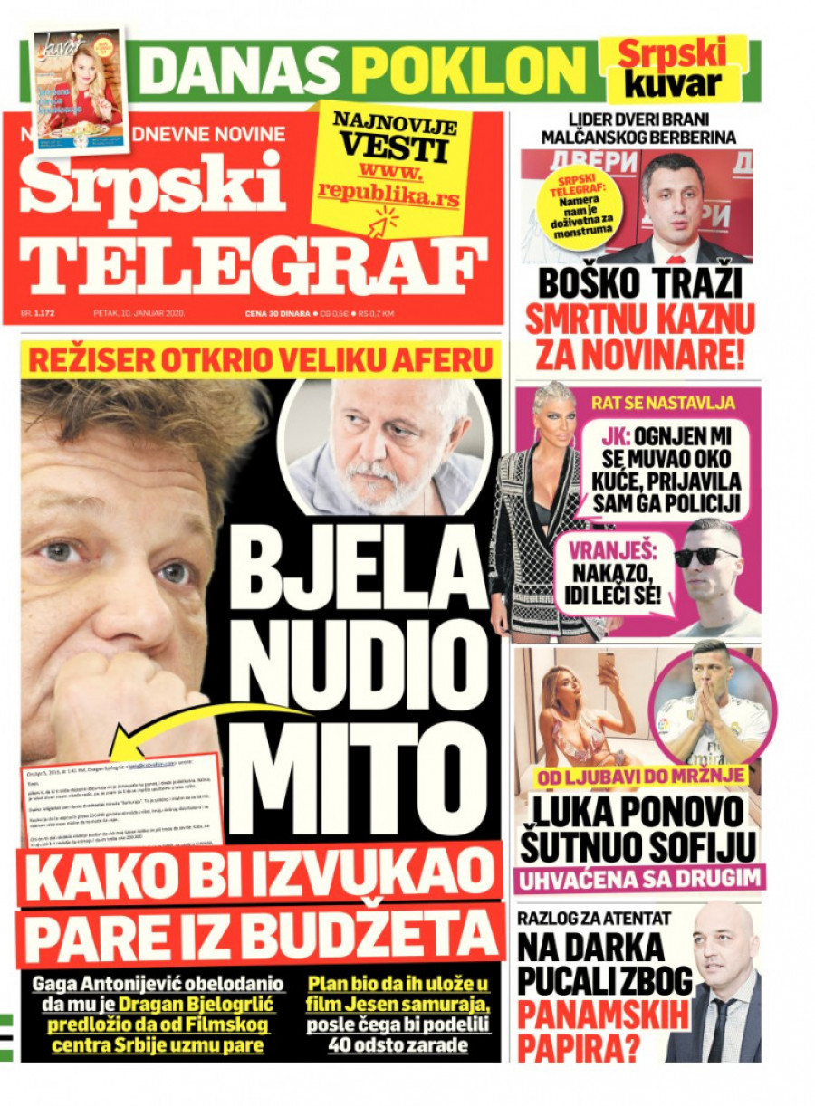 Kako je dragan Bjelogrlić reagovao na optužbe i šta kažu ljudi iz filmske industrije dobro upućeni u aferu, pročitajte u sutrašnjem broju Srpskog telegrafa, kao i na portalu Republika.