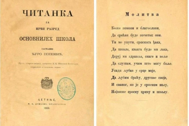 Dokaza za to ima mnogo, a jedan od neoborivih, jeste udžbenik za đake prvake koji je štampan na Cetinju 1906. godine, a čiji je autor Đuro L. Popović, ugledni prosvetni radnik.