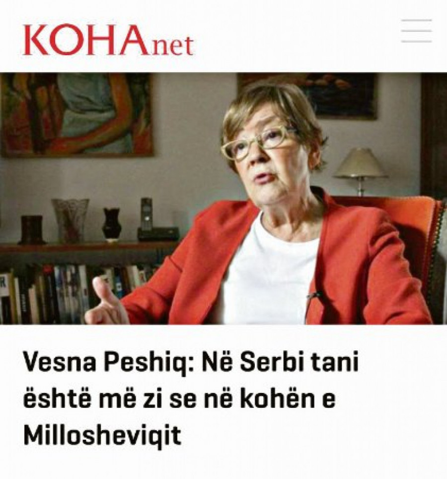 Kosovski mediji na albanskom jeziku jedva su dočekali da Pešićeva kao promoterka stavova Đilasovog SZS opljune po Srbiji. Gotovo svi su preneli deo njenog intervjua koji je dala dnevnom listu Danas, gde je na pitanje o brutalnoj pretnji predsedniku Srbije rekla da je sada gore nego u vreme Slobodana Miloševića.