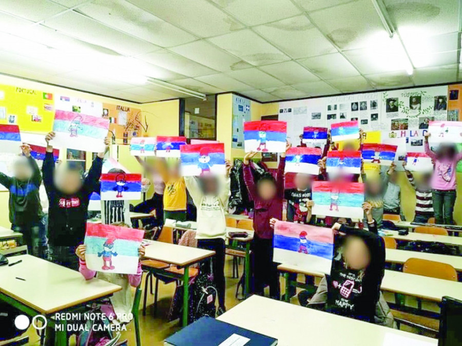 Učiteljica stradala zbog trobojke Foto: Facebook/Luka RadonjićOsnovna škola "Jugoslavija" u Baru pokrenula je disciplinski postupak protiv učiteljice Rade Višnjić jer je učenicima zadala da crtaju trobojku na času. Da je protiv Višnjićeve pokrenut postupak, potvrdila je direktorka škole Biljana Vukmanović. - Naša škola nije mesto u kojem će se demonstrirati otvoreno ili prikriveno političko delovanje, već bezbedno i prijatno mesto za sve đake - rekla je direktorka. |