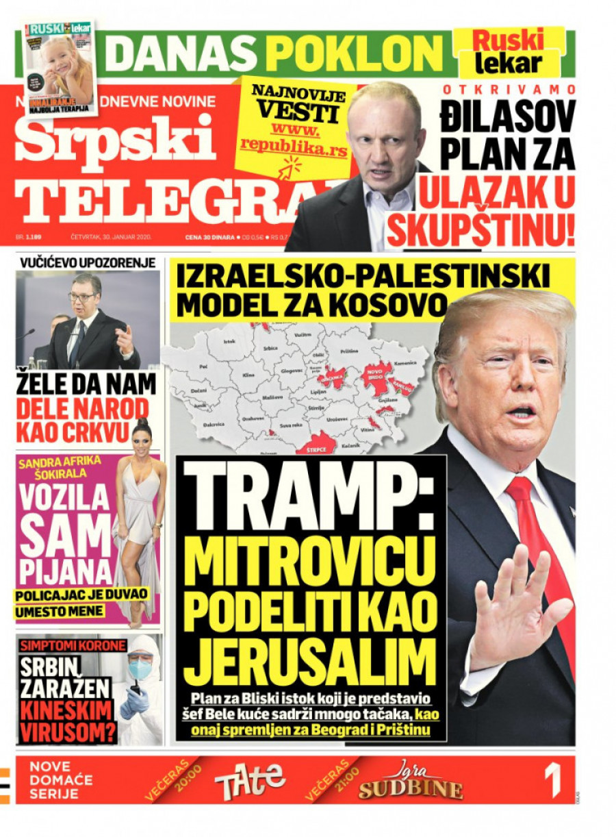 SAMO U SRPSKOM TELEGRAFU: Tramp hoće da podeli Mitrovicu kao Jerusalim