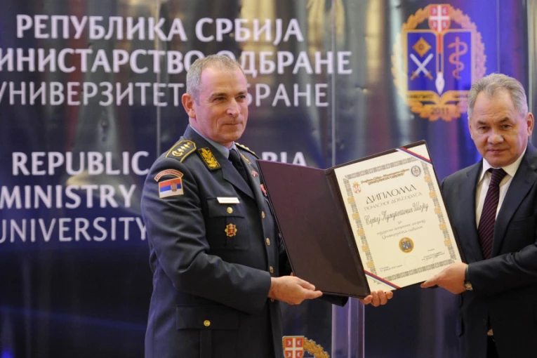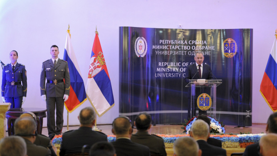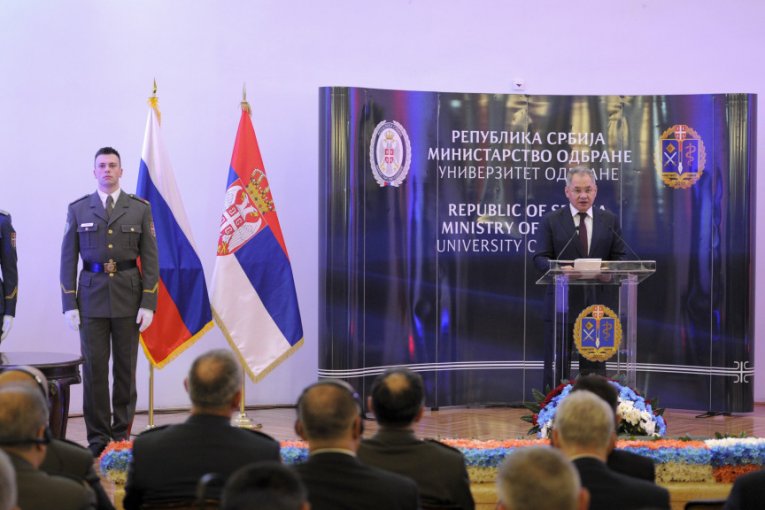 14:15 - Počela je svečanost uručenja počasnog doktorata Univerziteta odbrane ministru Šojguu. On se obraća prisutnima;