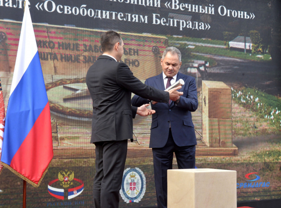 Ministri odbrane Srbije i Rusije, Aleksandar Vulin i Sergej Šojgu, položili su na Spomen-groblju oslobodiocima Beograda i kapsulu sa zemljom iz Rusije, a na mestu buduće skulpturno- arhitektonske kompozicije "Večna vatra", čime je i označen početak njene izgradnje.