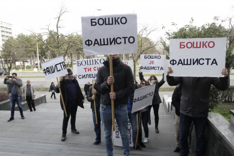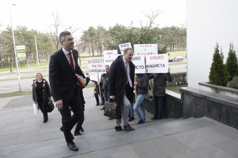 Nešto kasnije, pojavio se i lider Dveri kojeg su okupljeni dočekali skandirajući "Boško, fašisto", "Gde ti je testera?" i "Ua, Boško".