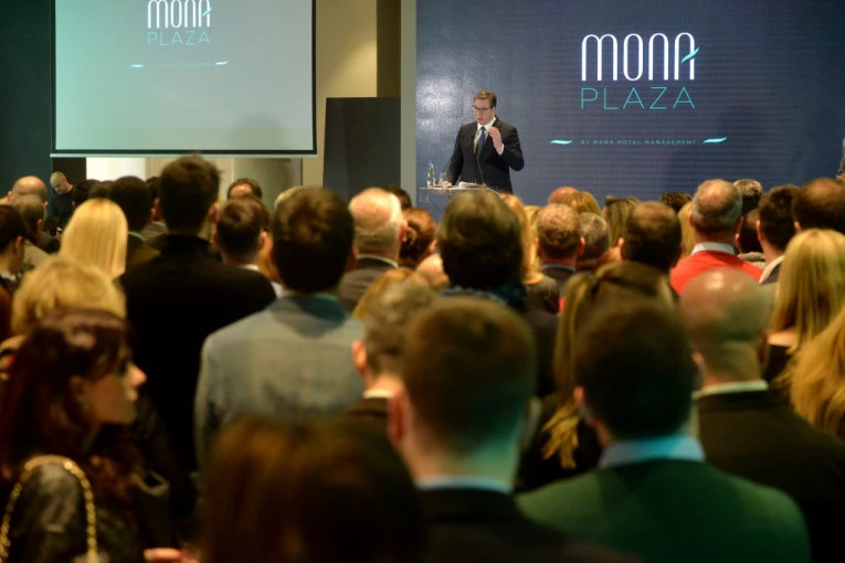 Nakon što je predsednik Srbije Aleksandar Vučić obišao hotel Mona Plaza na Dorćolu, usledilo je obraćanje novinarima.