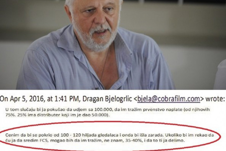 Podsetimo, protiv Bjelogrlića je podneta krivična prijava nakon što su objavljeni mejlovi koje je slao reditelju Predragu Gagi Antonijeviću, nudeći mu mito ako izlobira da film "Jesen samuraja" dobije novac (15 miliona dinara) na konkursu Filmskog centra Srbije (FCS), a da onda njih dvojica podele plen. Sve to jasno se vidi iz mejlova čiju je autentičnost Antonijević potvrdio u više navrata, dok se Bjelogrlić u početku nije izjašnjavao, ne odgovarajući danima na pitanja našeg lista, da bi potom u izjavama za druge medije negirao da su to njegovi mejlovi.