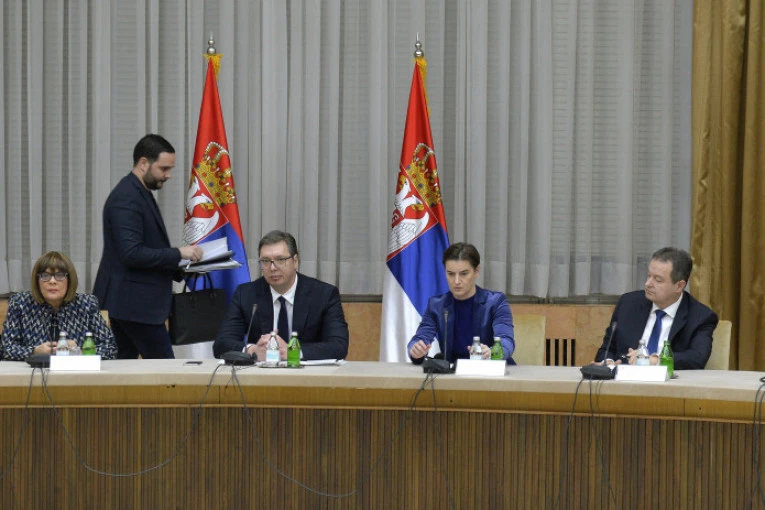 Predsednik Srbije Aleksandar Vučić predsedava večeras u Palati Srbija sastankom kriznih štabova za sprečavanje mogućih štetnih posledica izavanih virusom korona.