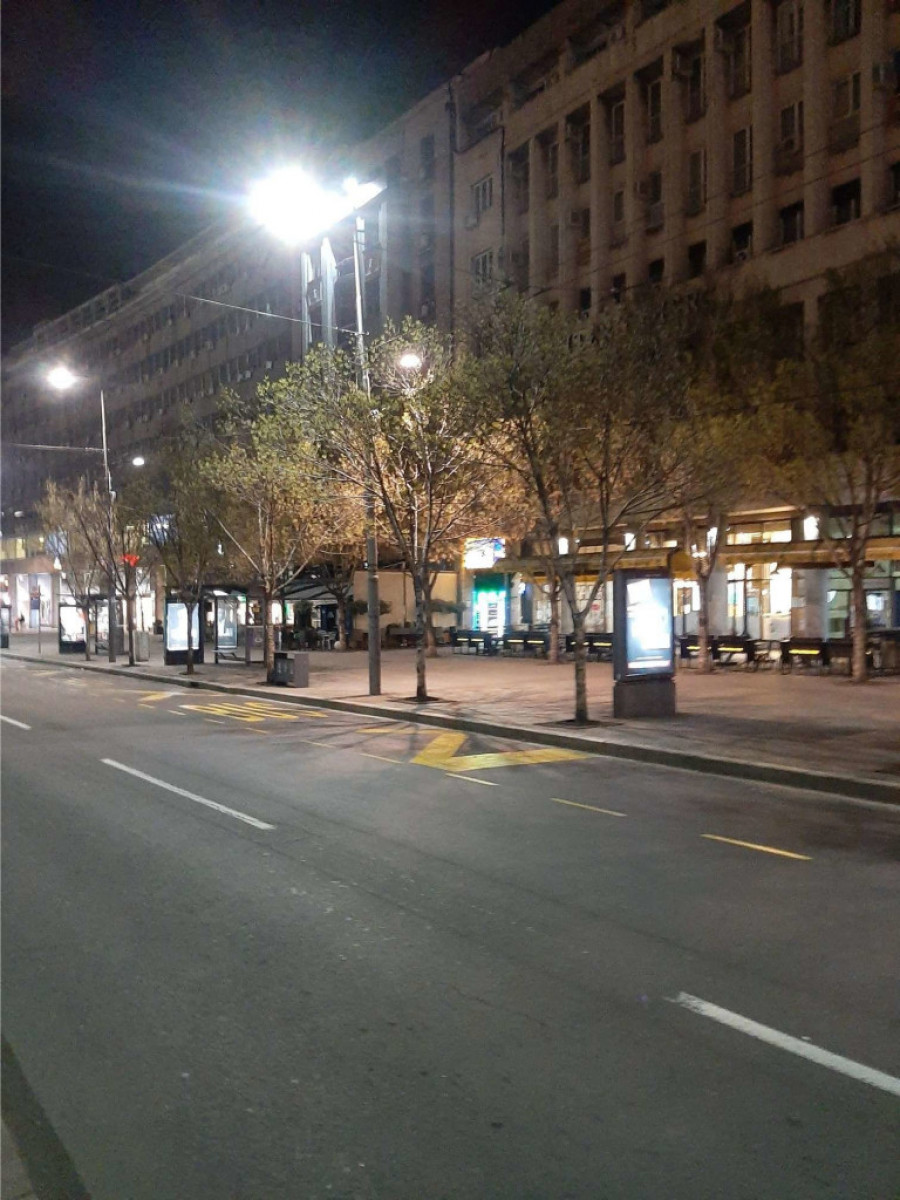 Ulice Beograda nešto posle 23 časa sablasno su puste, zabeležio je novinar Republike.