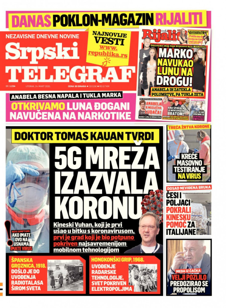 - Kada bi ova konstatacija bila tačna, u Iranu ne bi ni bilo zaraze. Ovo je još jedan od pokušaja da se skrene pažnja od centralnih dilema, da li je ovaj virus nastao u laboratoriji ili ne, odnosno kako su formirana žarišta u Kini i Italiji, spontano ili namerno?! Ova veza između 5G mreže i virusa je tipičan primer ekonomskog ratovanja, gde se insinuira da 5G tehnologija nije bezbedna i da je štetna po zdravlje. S druge strane, sigurno je da tehnološki napredak može da ima posledice po imunitet, ali i zdravlje ljudi - smatra Miletić.