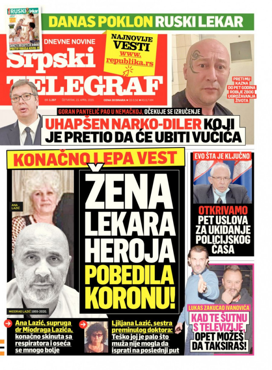 Nakon niza loših vesti koje su dolazile iz Niša, konačno iz ovog grada pristižu prijatne informacije. Supruga Miodraga Lazića pobedila je koronu i sada se oseća dobro.