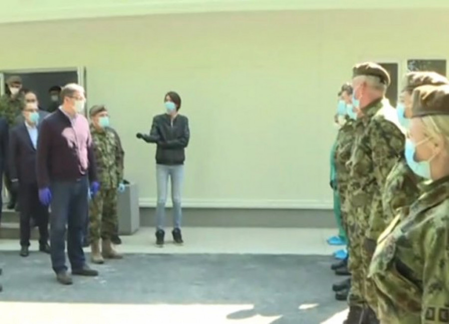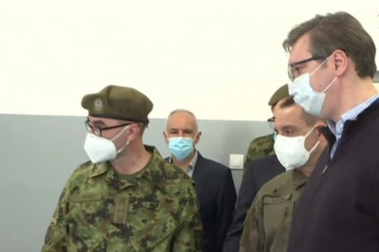 Predsednik Srbije Aleksandar Vučić prisustvuje otvaranju nove bolnice u Vojnomedicinskom centru "Karaburma", koja je namenjena lečenju obolelih od virusa KOVID-19.
