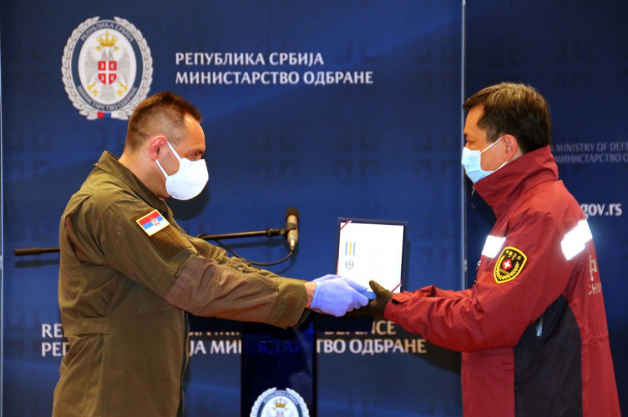 U ime stručnog medicinskog tima, dr Peng Džićiang zahvalio je Ministarstvu odbrane Srbije na dodeli spomen-medalja.