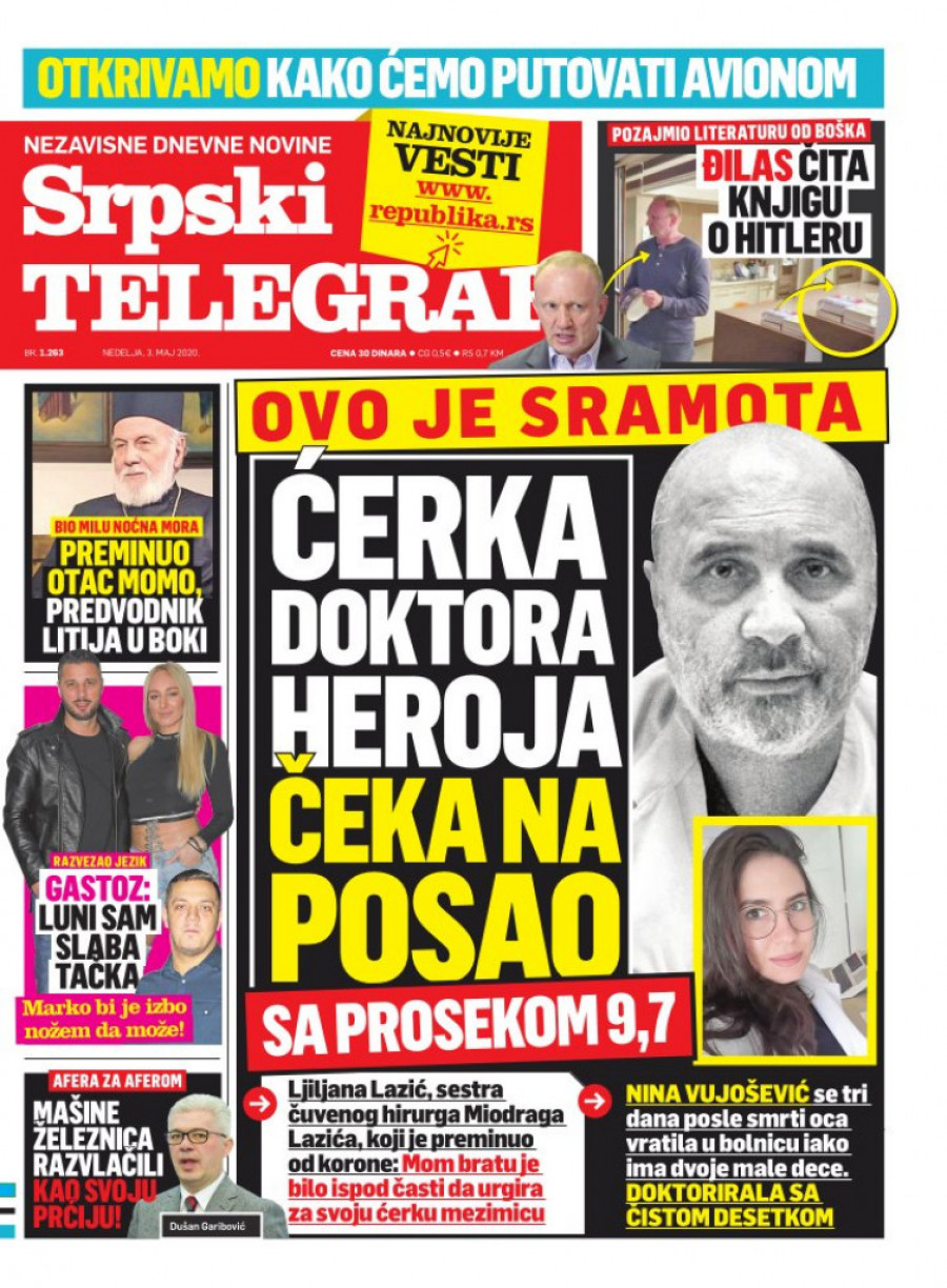 NE PROPUSTITE! Srpski telegraf na kioscima u nedelju 3. maja