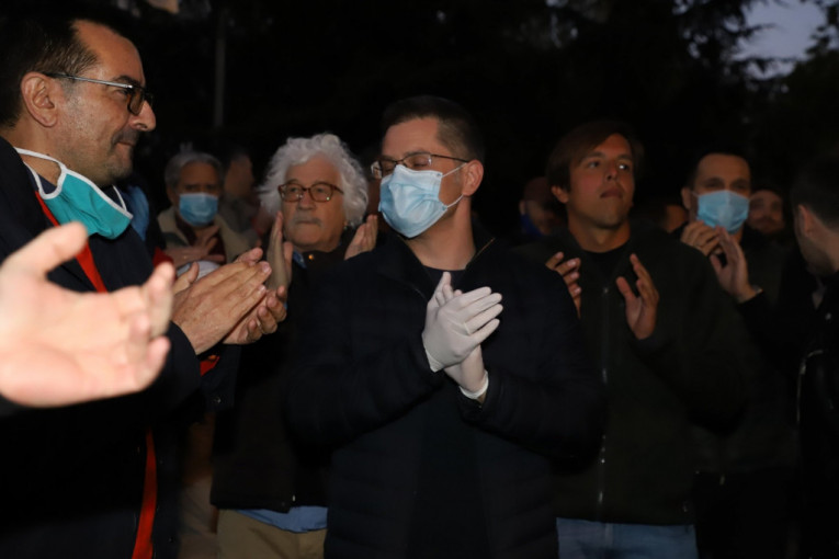 Lider SzS Dragan Đilas organizovao je okupljanje na mestu gde je sinoć imao najveću ulogu u svom životu, uprkos zabrani kretanja koja je počela u 18 časova.