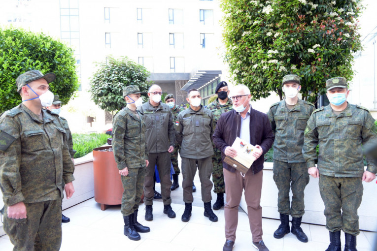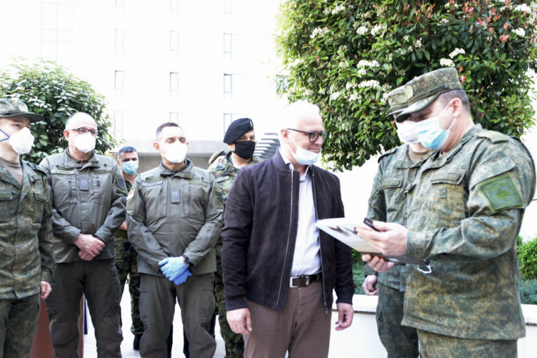 - Da nije bilo vojske i njihovih požrtvovanih pripadnika ne bismo uspeli da ovako uspešno sprovedemo mere i ne bismo bili u situaciji da mere mogu da se ublaže - rekao je Vesić i istakao da je ovo divan primer zajedničkog rada srpske i ruske vojske.