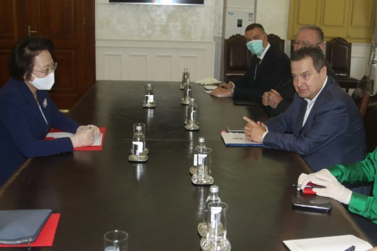 Ministar Dačić je zahvalio na pomoći Vlade NR Kine u medicinskoj opremi i materijalu, upućivanju tima medicinskih stručnjaka u Republiku Srbiju, donaciji dve laboratorije „Vatreno oko“ za testiranje na COVID-19, kao i na pomoći kineskih provincija i kompanija, a posebno na pojedinačnim donacijama ogromnog broja kineskih građana upućenih Srbiji.
