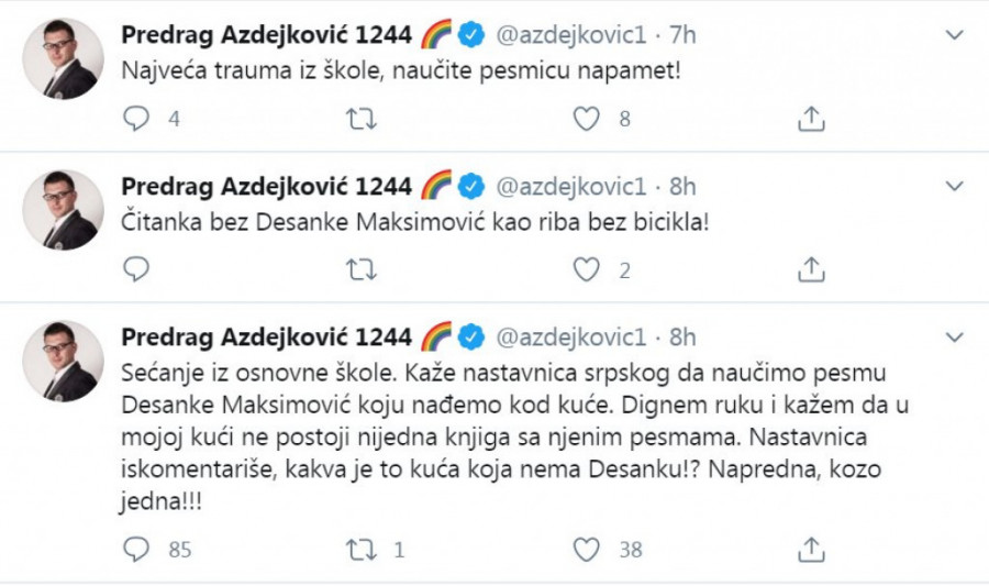 Gej aktivista Predrag Azdejković otkrio je na Tviteru koja mu je najveća trauma iz školskih dana.
