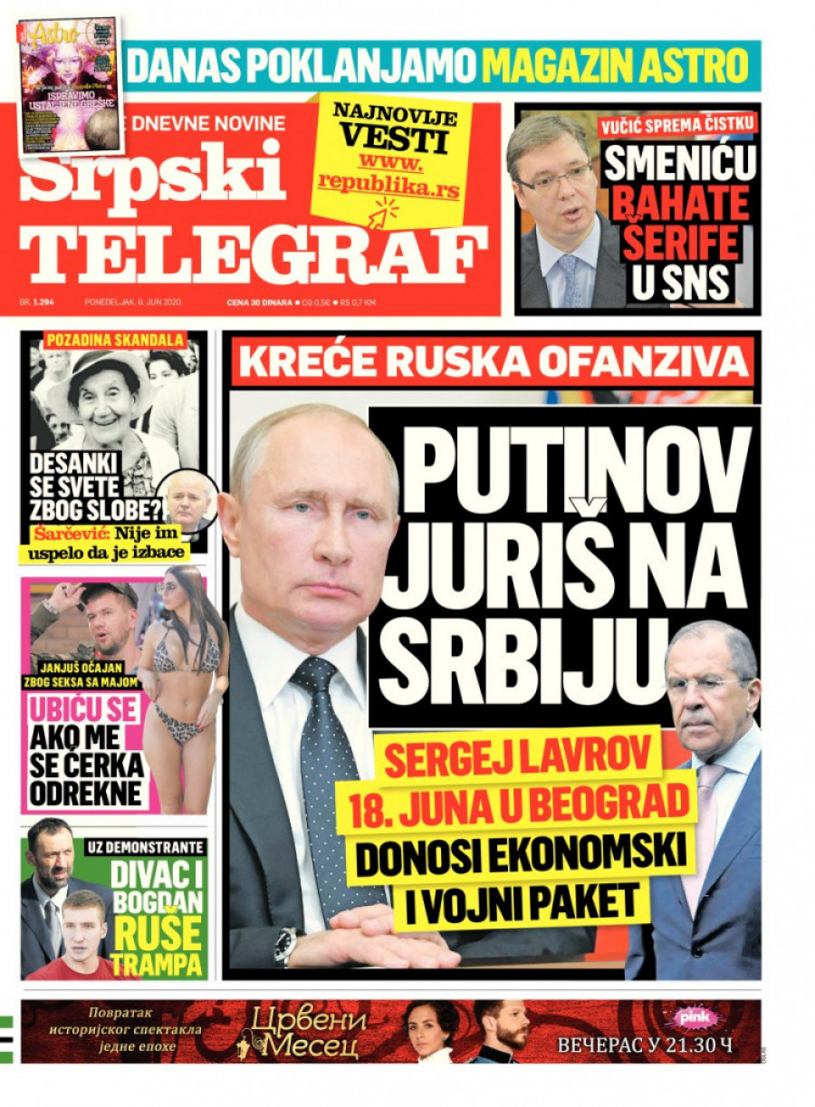 Osim toga u Srpskom telegrafu za 8. jun pročitajte i sve detalje šokantnog slučaja u Pančevu gde jedna devojčica od samo 12 godina zadaje glavobolje celom kraju! Saznajte i najnovije informacije o slučaju ubistva Jelene Marjanović, kao i šta nas čeka ako dođe drugi talas korone. I na kraju, tema koja je ovih dana uzburkala javnost - izbacivanje Desanke Maksimović iz redovne lektire - obrađena je iz jedne neobične perspektive koja otkriva šta bi mogao biti razlog ovakvog pokušaja da se slavna pesnikinja ukloni iz udžbenika. O svemu ovome čitajte u sutrašnjem izdanju Srpskog telegrafa, kao i na portalu Republika.