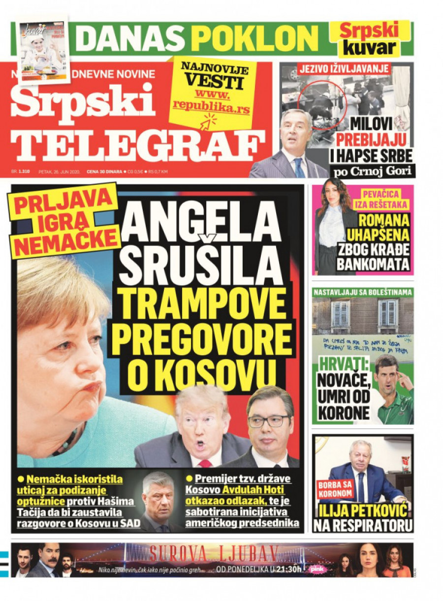 Nemačka predvođena kancelarkom Angelom Merkel sabotirala je inicijativu američkog predsednika Donalda Trampa da se u subotu u Beloj kući obnovi dijalog Beograda i Prištine nakon 19 meseci zastoja. Akcija Berlina protiv američkog učešća u rešavanju kosovskog pitanja traje već godinama (o čemu je Srpski telegraf već pisao), a uoči razgovora u Vašingtonu, kancelarka je odigrala najprljaviju igru, kojom je osujetila sastanak koji je sazvao Trpamov specijalac Ričard Grenel.