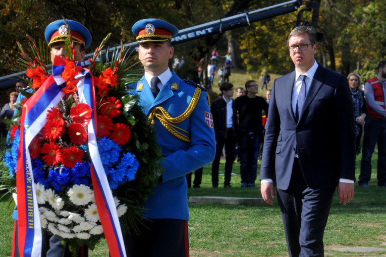 VELIKI ŠKOLSKI ČAS U ŠUMARICAMA: Vučić položio venac u spomen-parku u Kragujevcu