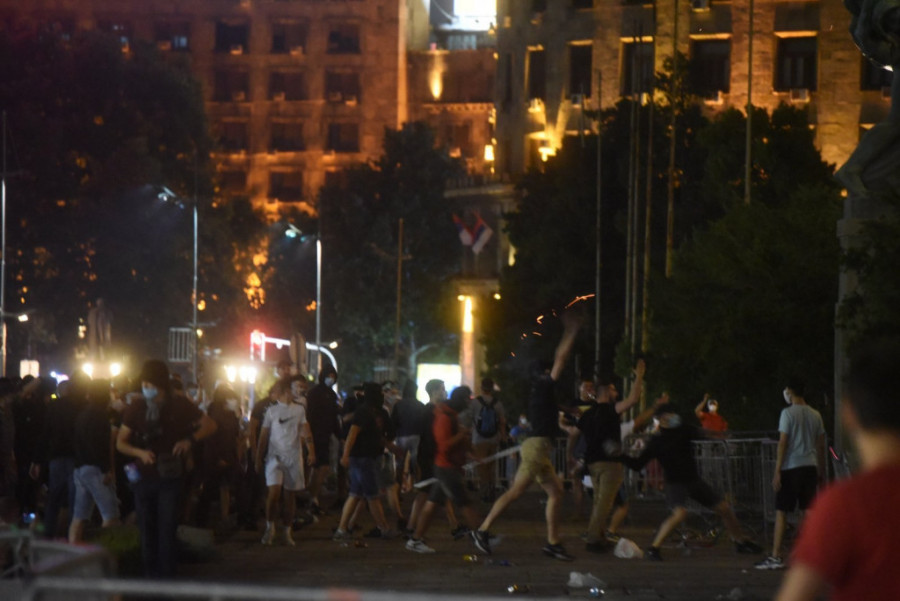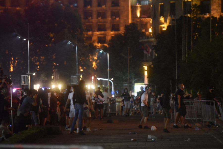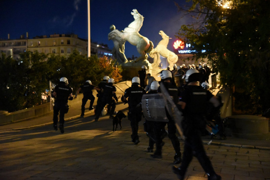 Policija za sada stoji mirno, ali prema svim pokazateljima izgleda da će intervenisati protiv izgrednika koji prave haos.