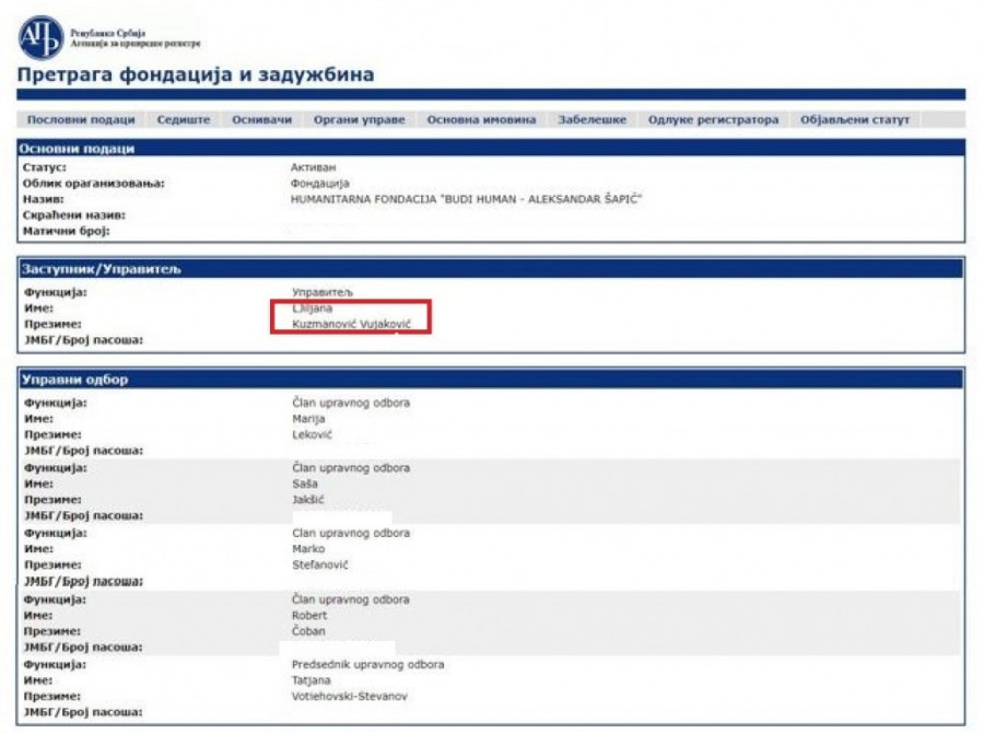 U izvodima iz APR možete da vidite da je direktorka fondacije Budi human u isto vreme i direktorka praktično ugašene opštinske firme Centar za razvoj i lokalnu ekonomiju Novi Beograd!? Odnosno, prima platu u opštini, a radi u njegovoj privatnoj fondaciji. I ostali zaposleni u fondaciji primaju opštinske plate! To je slučaj i sa njegovim plivačkim klubom na SC „11. april“, kao i političkim udruženjem Za naš grad. Svi praktično rade u njegovim privatnim firmama, a plate primaju u opštini…