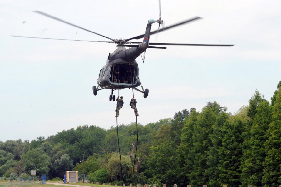 Foto: ST/D. KADIĆZa ovu vežbu morali ste da imate helikopter, kao i nove konopce, odgovarajuću opremu, ali i ronilačku opremu za ronioce koji su iskakali iz helikoptera - izjavio je danas ministar odbrane Aleksandar Vulin koji je obišao obuku pripadnika 72. brigade za specijalne operacije u rejonu prevodnice Kajtasovo, gde su izveli desant ronilaca iz helikoptera na vodenu površinu, desant iz čamaca pri punoj brzini i vertikalni manevar primenom tehnike brzog spuštanja.