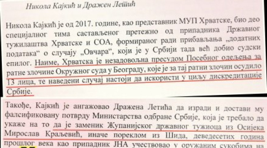 Kako ocrniti Glavaševog tužiocaKakva je veza Kajkića i Dražena Letića? Od njega je tražio da mu izradi falsifikovanu potvrdu Ministarstva odbrane Srbije kako bi diskreditovao zamenika županijskog državnog tužioca iz Osijeka Miroslava Kraljevića, rodom iz Šida, koji je devedesetih godina kao pripadnik JNA učestvovao u oružanim sukobima na prostoru Hrvatske.