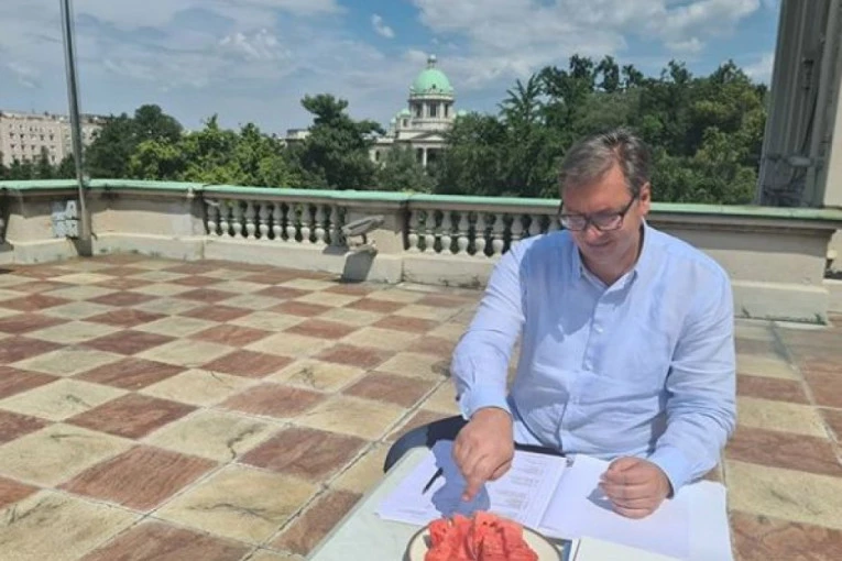 (FOTO) Ništa bez sremske lubenice: Evo kako se predsednik osvežava dok sprema važne planove i programe!
