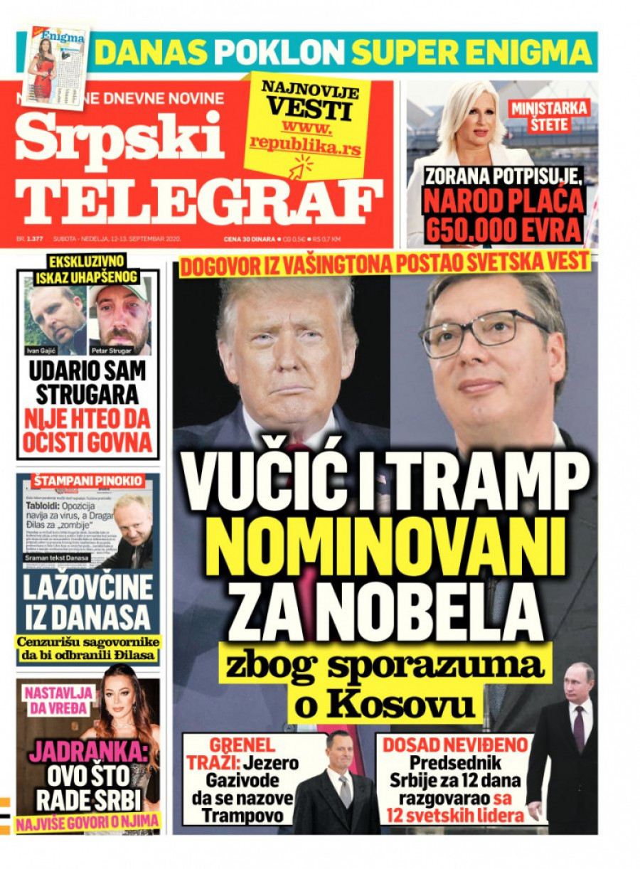 NOBELOVA NAGRADA ZA VUČIĆA I TRAMPA! PRIZNANJE ZA MIR ZBOG VAŠINGTONSKOG SPORAZUMA