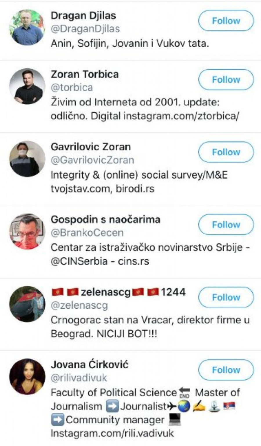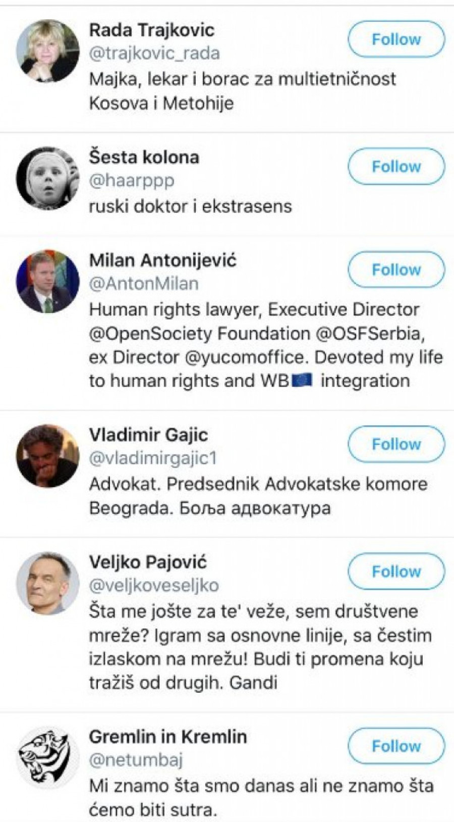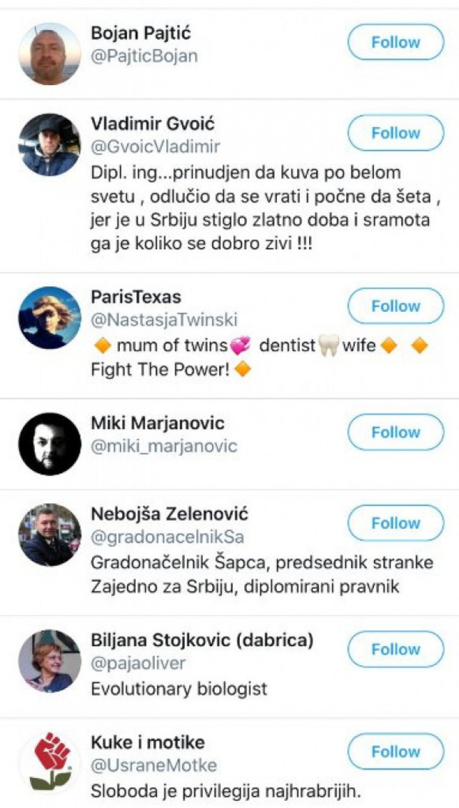 Prate ga Đilas, Zelenović, Rada sa Zelenog venca... Foto: twitterTviteraša koji je objavio ovako skandalozne komentare prati Đilas lično, kao i veliki broj samozvanih velikih intelektualaca.