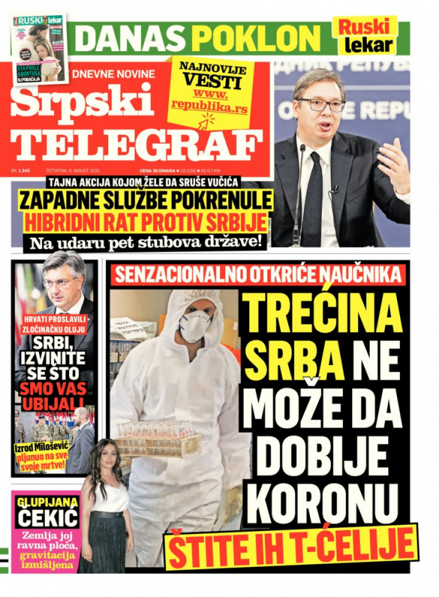 Potvrđeno pisanje našeg listaNaučnici pretpostavljaju da je veliki broj ljudi zapravo već imun na KOVID-19 i da je ovaj imunitet proistekao iz običnih prehlada koje takođe uzrokuju koronavirusi, objavljeno je u velikom britanskom istraživanju. O tome je, podsetimo, pisao nedavno Srpski telegraf i tada smo konstatovali da otprilike trećina građana Srbije ni teoretski ne može da oboli od korone.